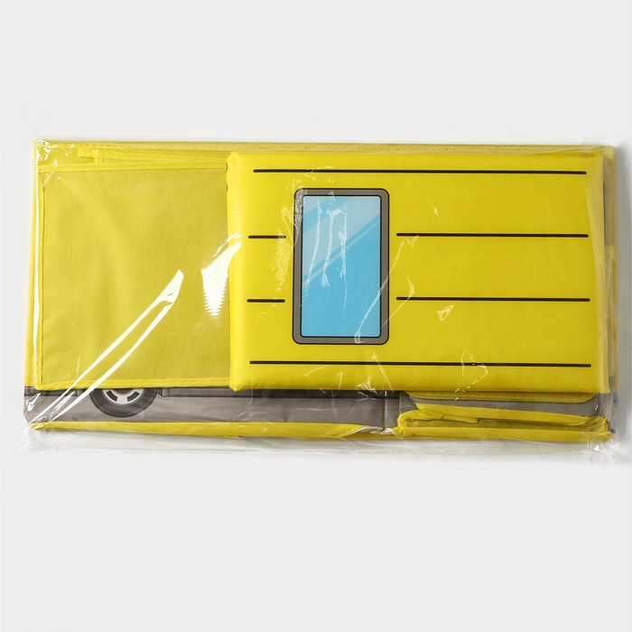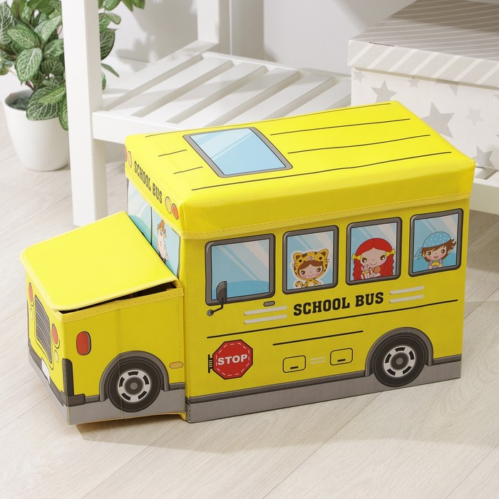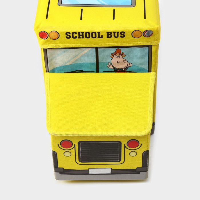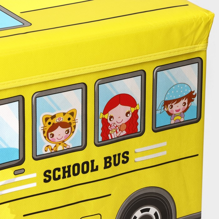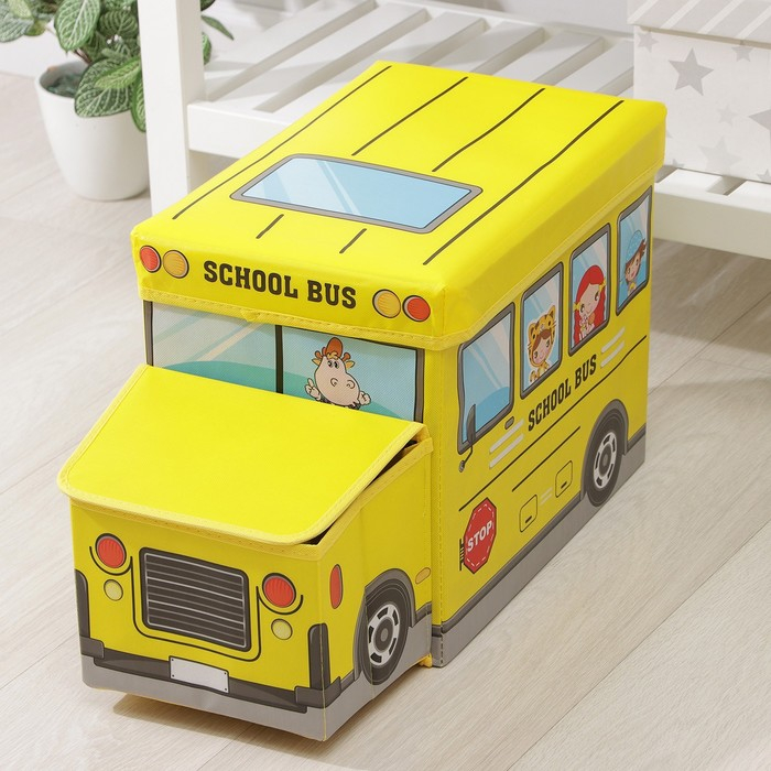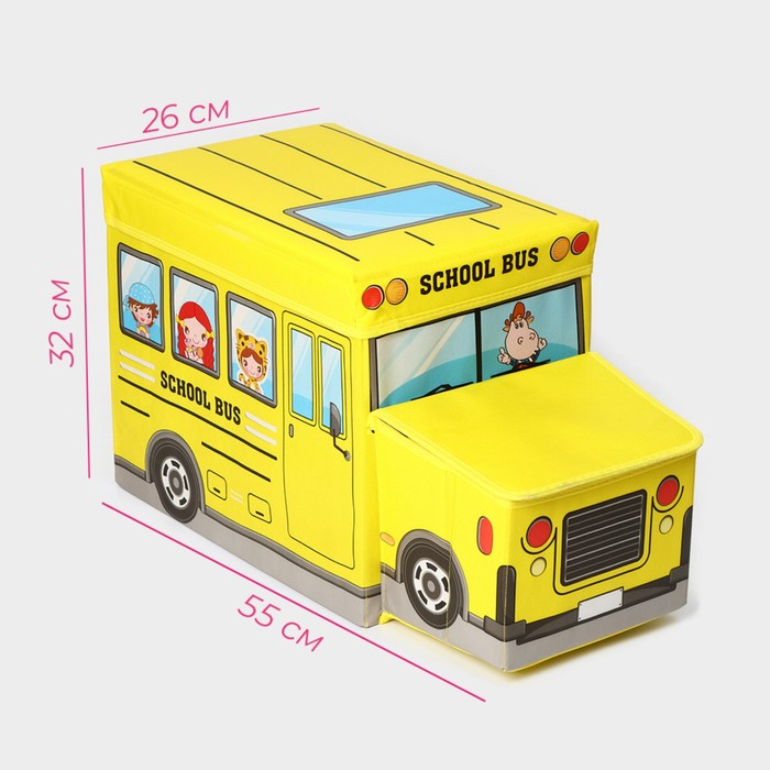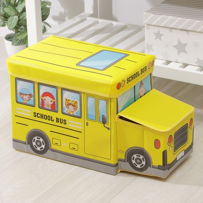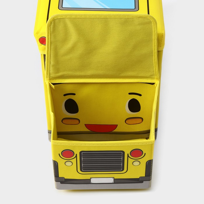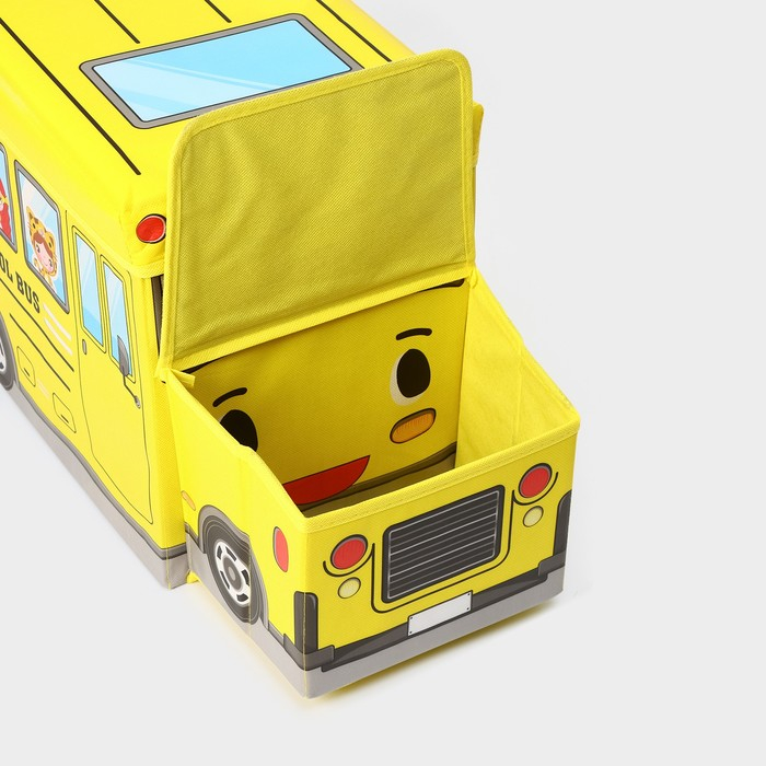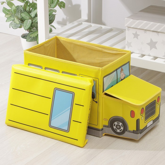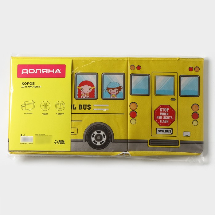 Короб стеллажный для хранения с крышкой Доляна «Школьный автобус», 55×26×32 см, 2 отделения, цвет жёлтый