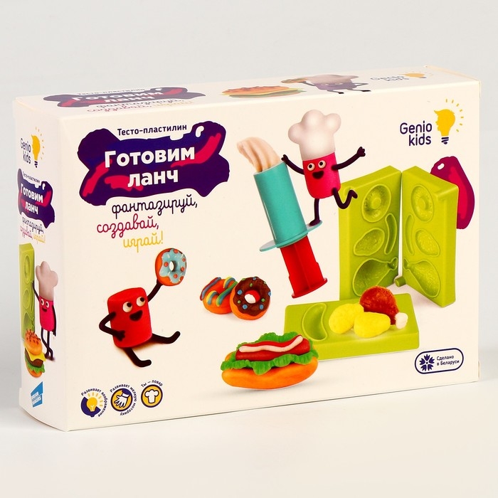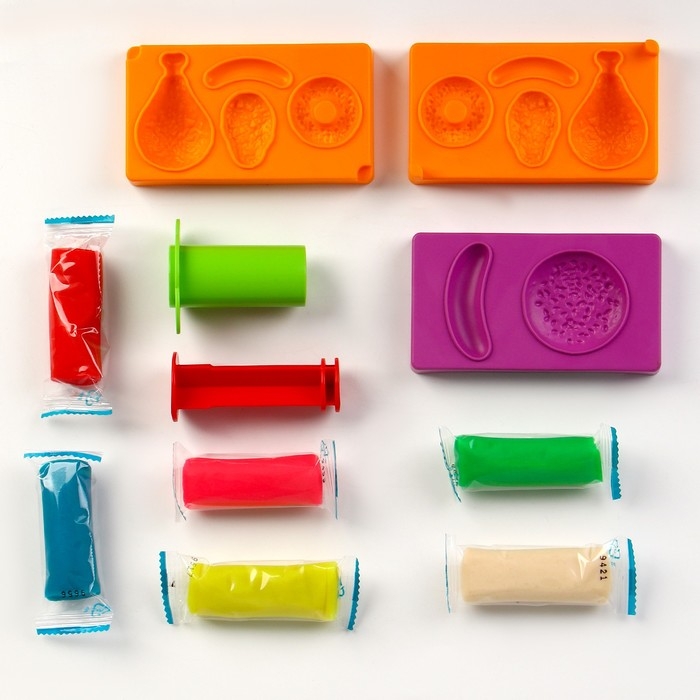 Лепить из пластилина — отличный способ развивать творческие способности детей. С набором для лепки «Готовим ланч» ребёнок приготовит любое блюдо: курицу, картофель, хот-дог и даже пончик. Занятие подарит юному кулинару удовольствие и пользу.