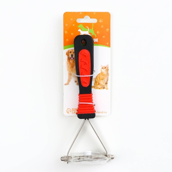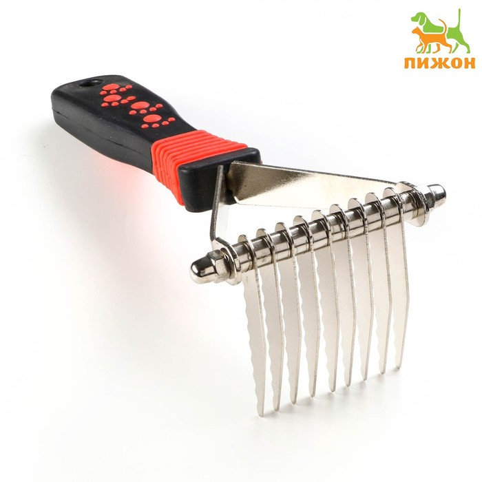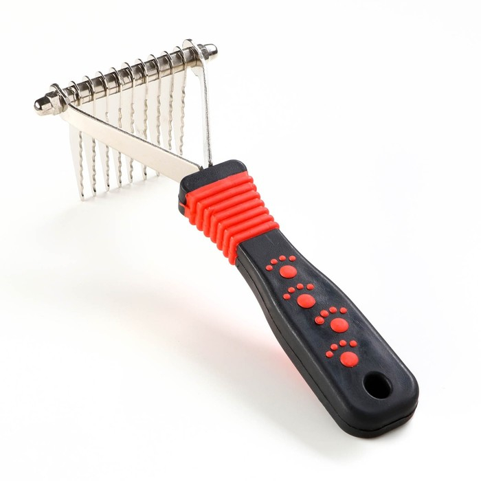 Колтунорез-грабли, 9 лезвий, с косточками на ручке, чёрно-красный