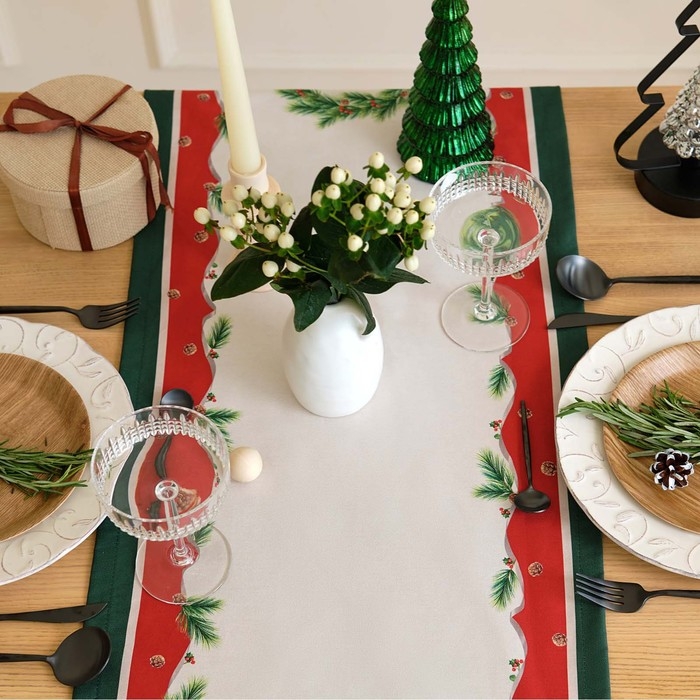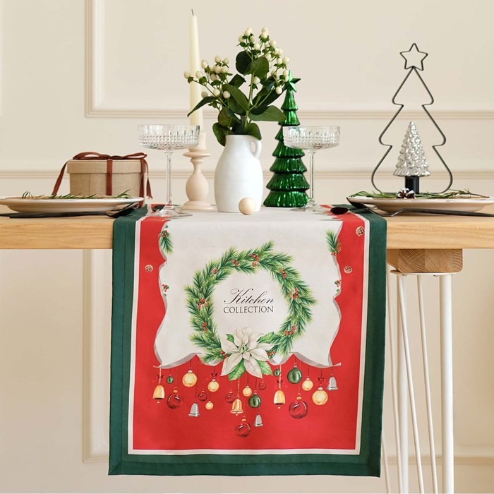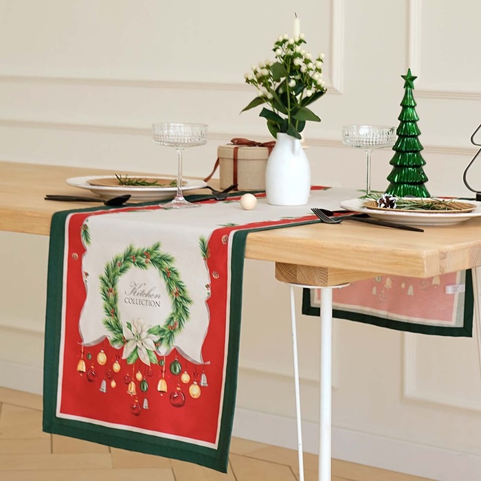Дорожка на стол Этель "Рождественский венок" 40х147 +/- 5 см, 100% хл, саржа 190 гр/м2