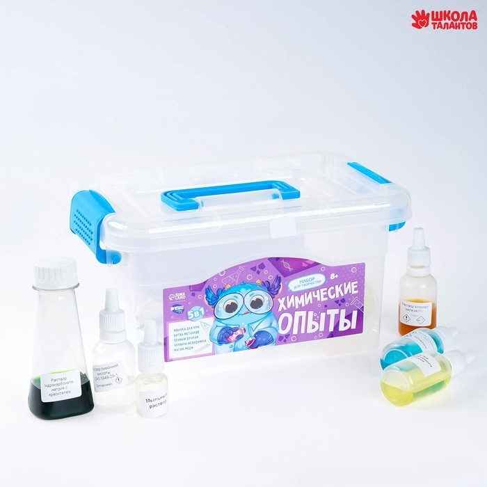С набором для опытов ребёнок узнает об удивительных свойствах химии, проведёт 5 увлекательных экспериментов дома и удивит своих друзей.