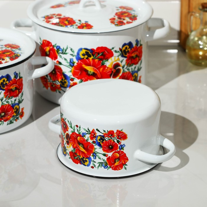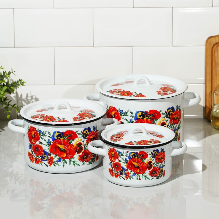 Набор кастрюль «Маки. Мечта», 3 предмета: 1,5 л, 2,9 л, 4,5 л, индукция