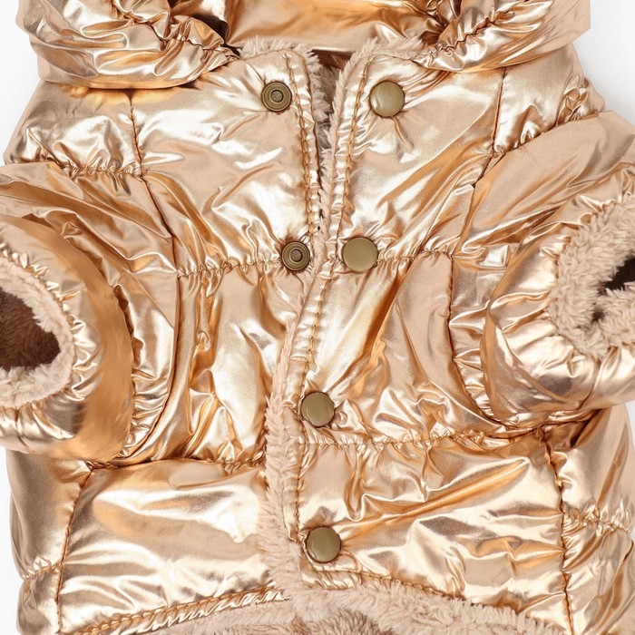 Позвольте вашей собаке чувствовать себя великолепно и стильно в этом золотом комбинезоне с мягким подкладом, который сочетает в себе комфорт и элегантность.
