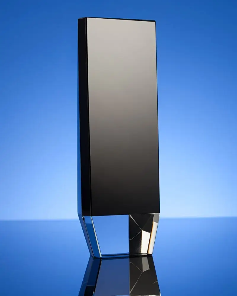 Награда изготовлена из стекла К9, в основе которого лежит оптическое боросиликатное стекло. Эту марку стекла отличает низкий процент посторонних включений, высокий показатель преломления и высокая прозрачность — идеальные качества для изготовления наград премиального уровня.
