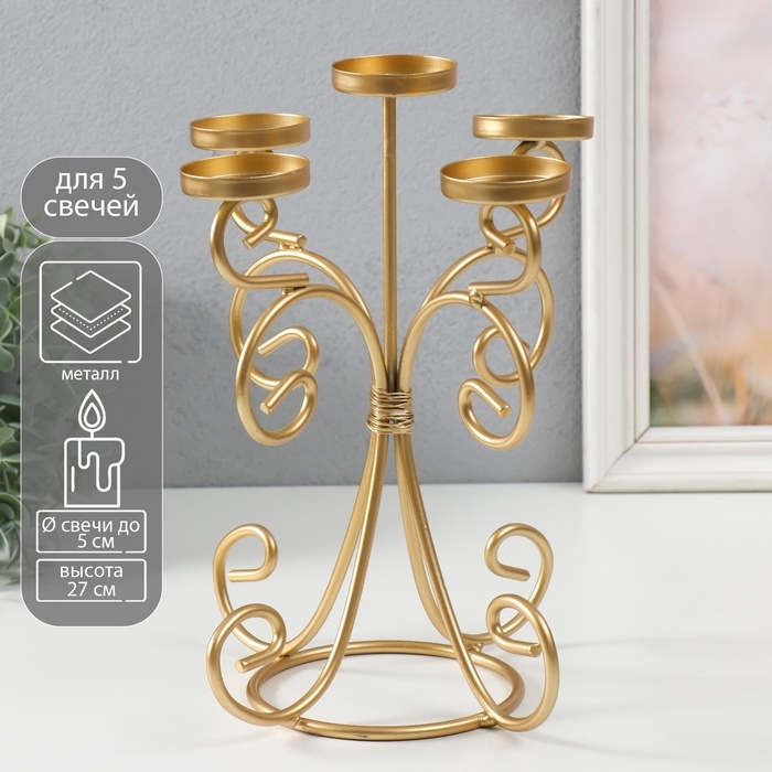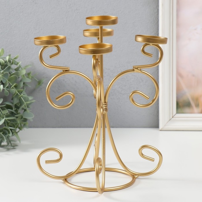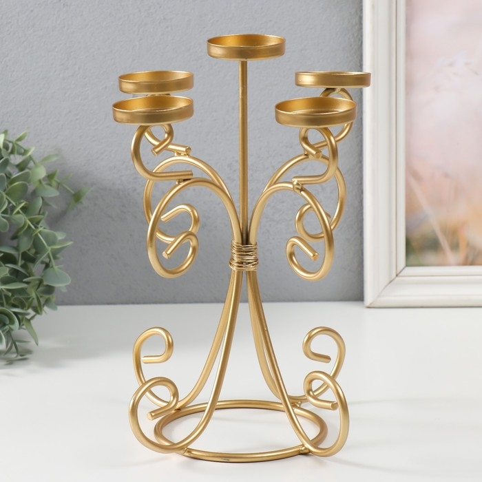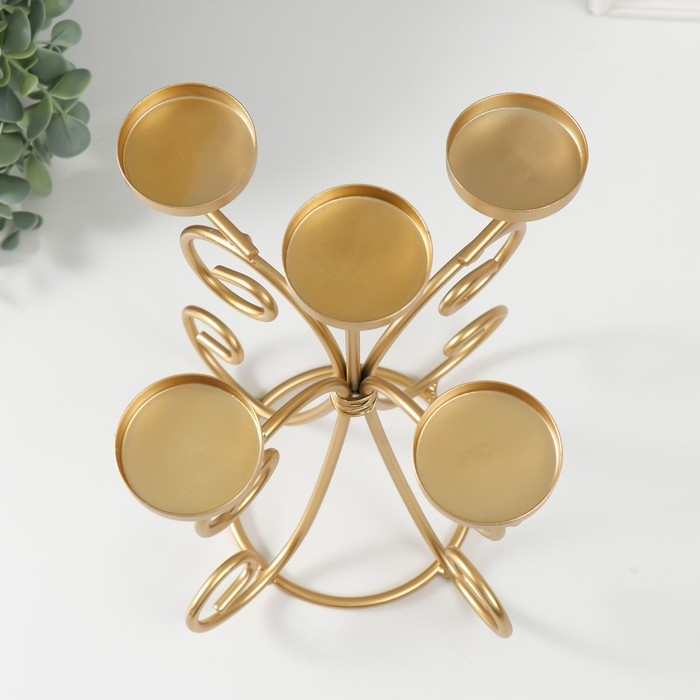 Подсвечник металл на 5 свечей "Вазон. Завитки" золото 21.5х21.5х27 см