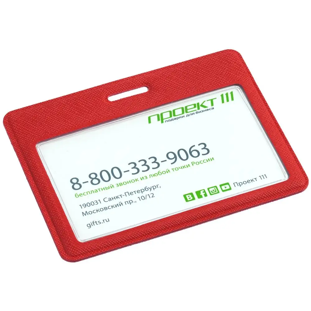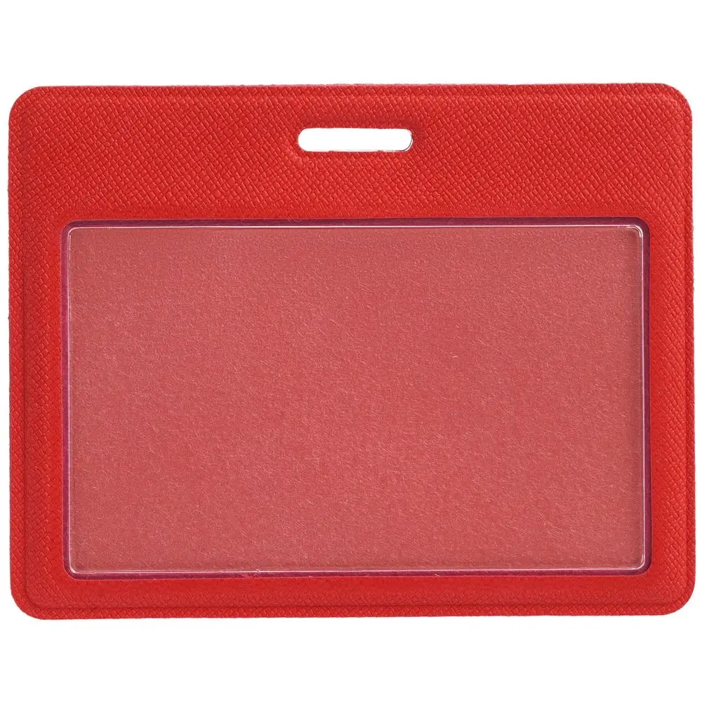 Чехол для карточки с пластиковым окошком из искусственного материала, имитирующего сафьяновую кожу.