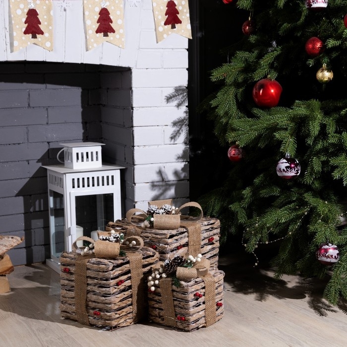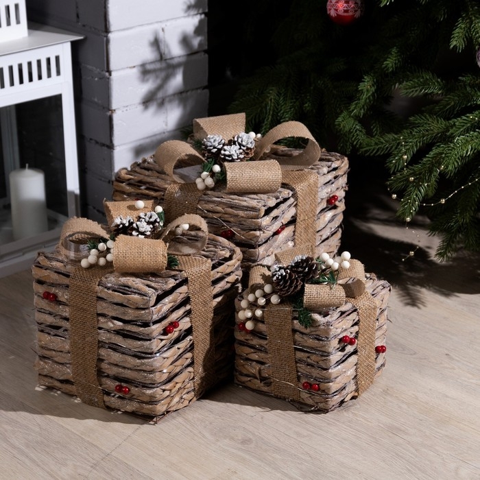 Светодиодная фигура «Эко-подарки» 15, 20, 25 см, текстиль, металл, батарейки ААх2 (не в комплекте), свечение тёплое белое