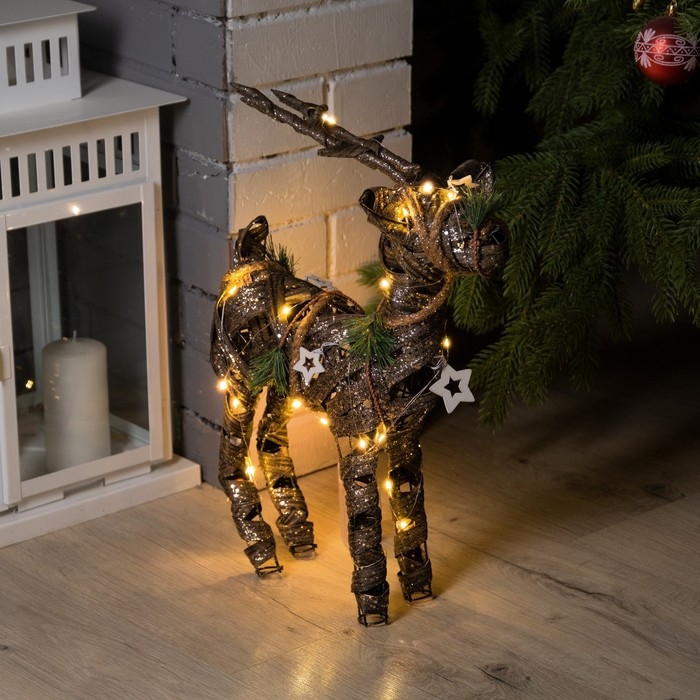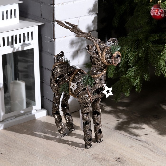 Светодиодная фигура «Плетёный олень» 29 × 42 × 10 см, металл, текстиль, батарейки ААх2 (не в комплекте), свечение тёплое белое