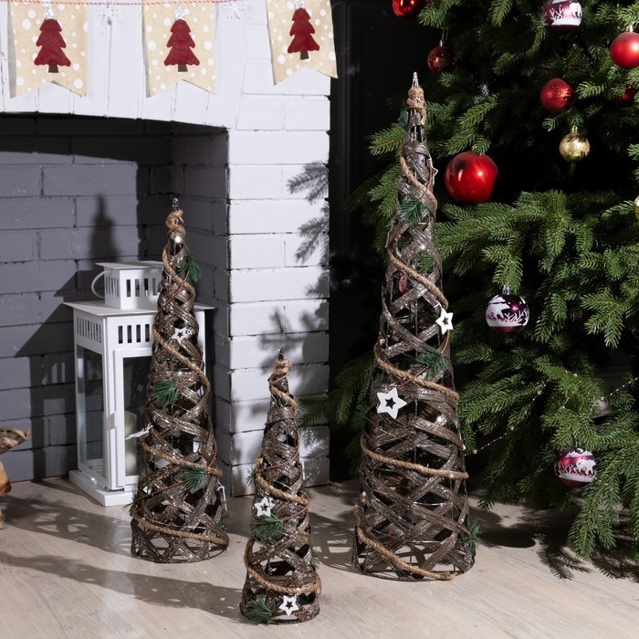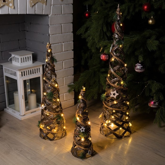Светодиодная фигура «Конусы плетёные» 40, 60, 80 см, текстиль, металл, батарейки ААх2 (не в комплекте), свечение тёплое белое