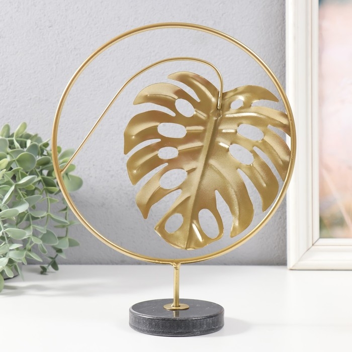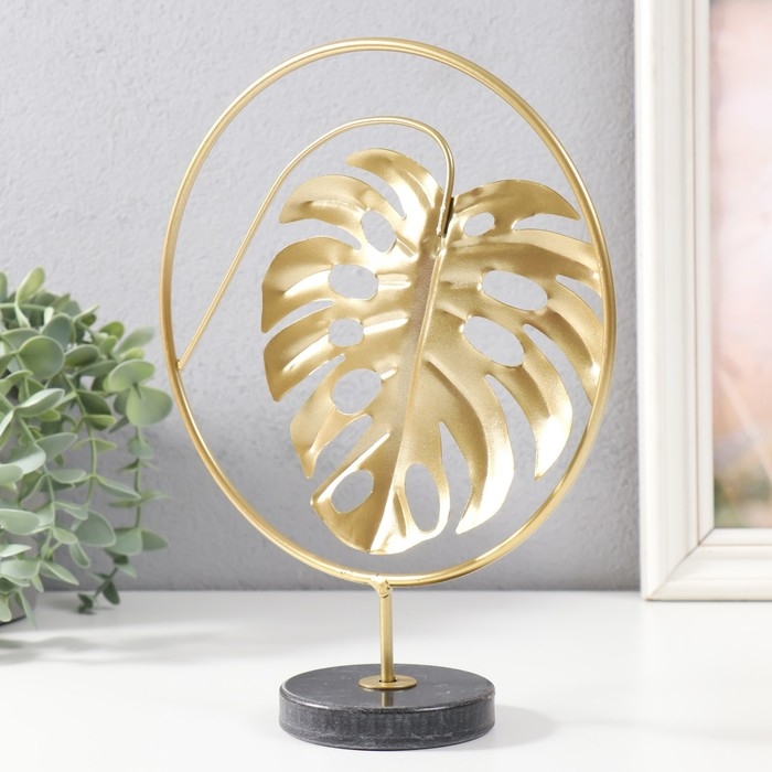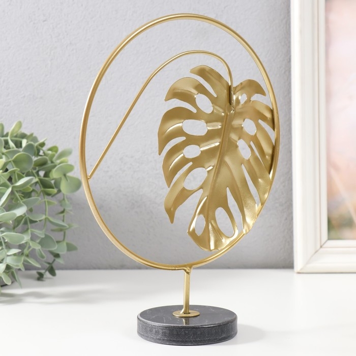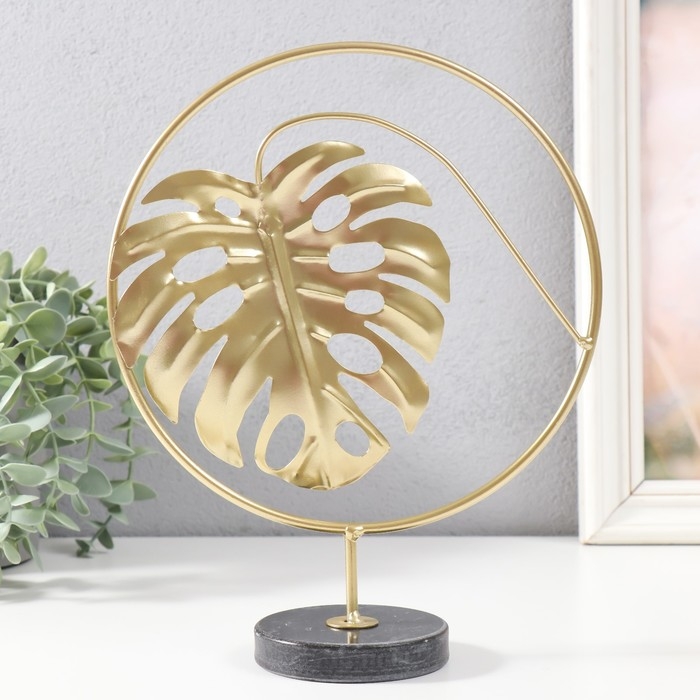 Сувенир металл, мрамор "Круг с листом монстеры" золото, черный 20х7,5х25 см