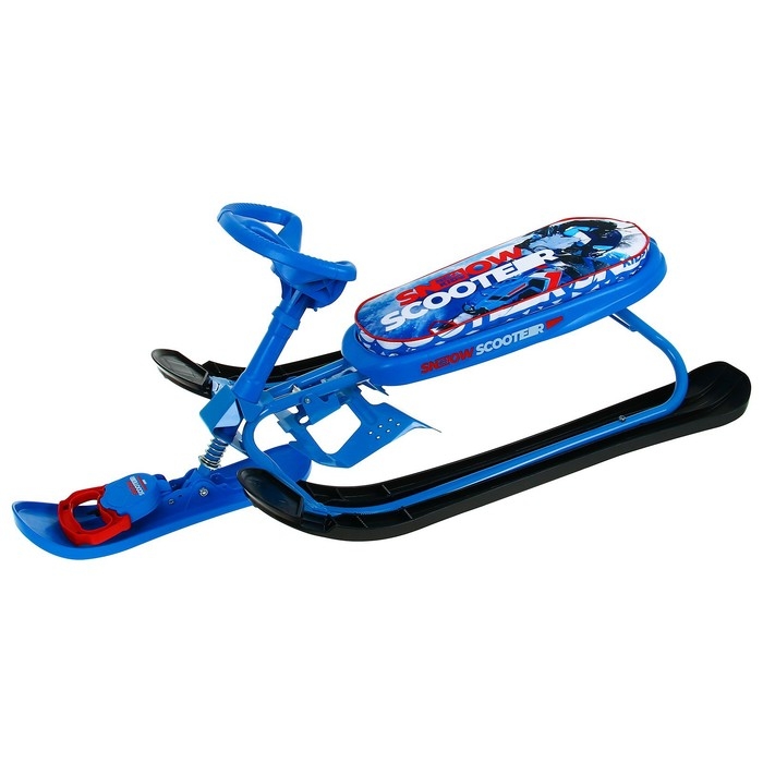 Снегокат предназначен для перевозки детей по плотному снегу или льду, катанию с горок. Имеет сварную конструкцию из стальных труб, пластиковых элементов и мягкое сиденье, обтянутое искусственной кожей с рисунком. Оснащён буксировочным тросом с автоматической намоткой и системой амортизации, которая обеспечивает комфортную поездку по крутым горкам и неровным поверхностям. Усиленный тормоз эффективен на обледенелой поверхности.
