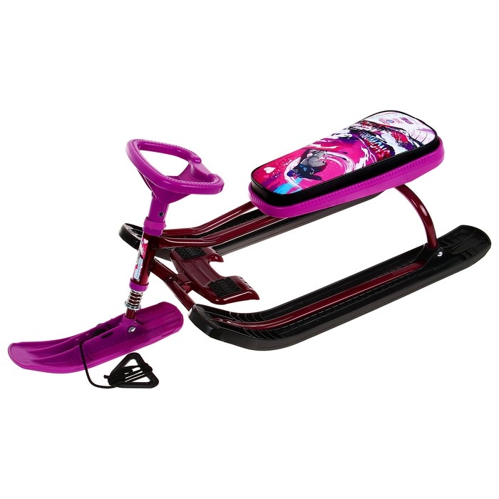 Снегокат предназначен для перевозки детей по плотному снегу или льду, катанию с горок. Имеет сварную конструкцию из стальных труб, пластиковых элементов и мягкое сиденье, обтянутое искусственной кожей с рисунком. Оснащён буксировочным тросом. Усиленный тормоз эффективен на обледенелой поверхности. В комплект входит набор наклеек на снегокат.