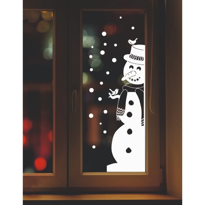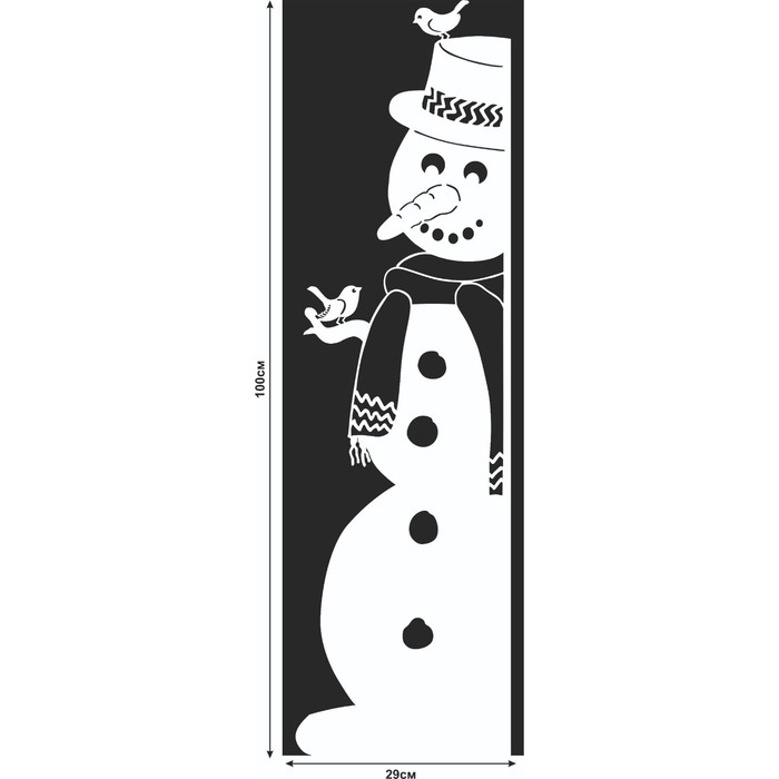 Наклейка декоративная для окон "Снеговик" 29х100 см (снег 10х20 см)
