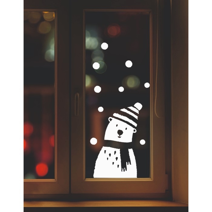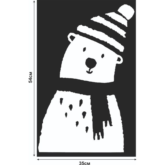 Наклейка декоративная для окон "Медведь в шапке" 35х54 см (снег 10х20 см)