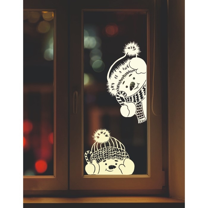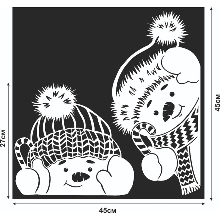 Наклейка декоративная для окон "Два снеговика" 45х45 см