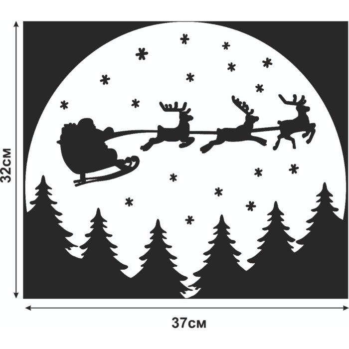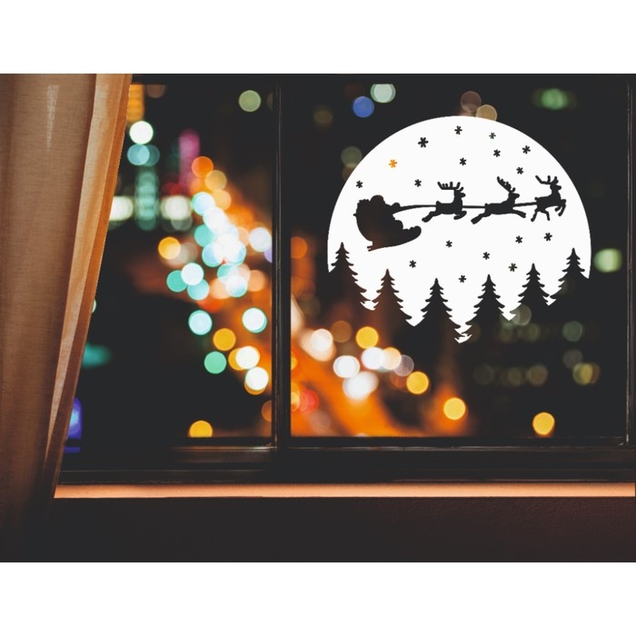 Наклейка декоративная для окон "Санта на фоне луны" 37х32 см