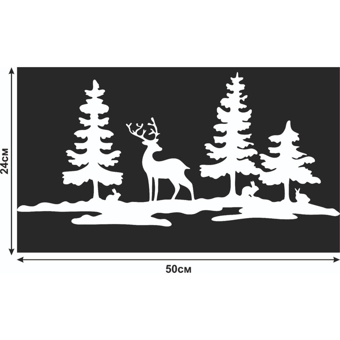 Наклейка декоративная для окон "Олень в лесу" 50х24 см (снег 10х20 см)