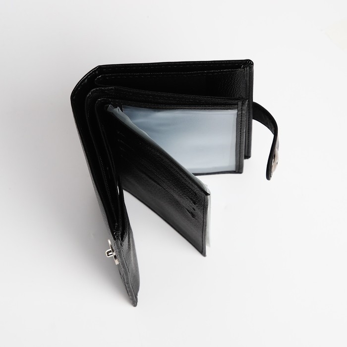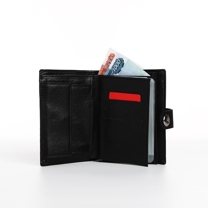Портмоне мужское на магните, 3 в 1, для купюр, автодокументов и паспорта, цвет чёрный