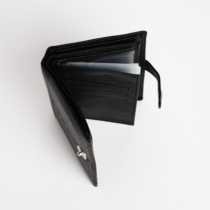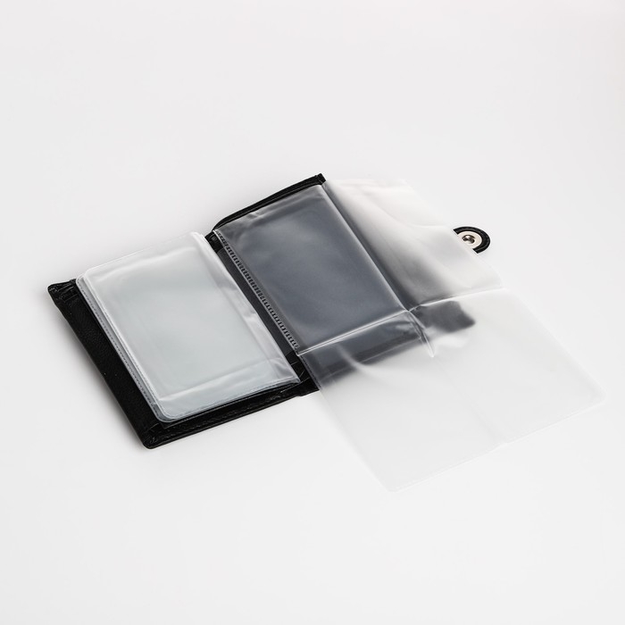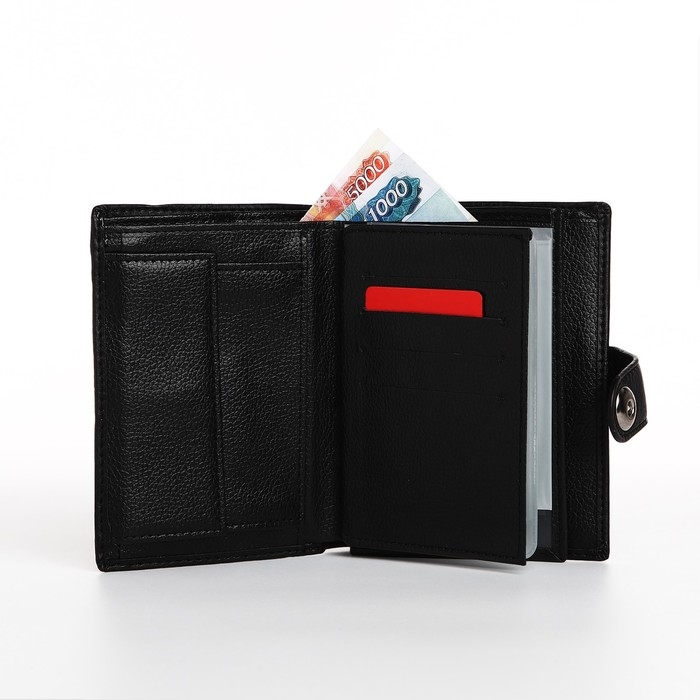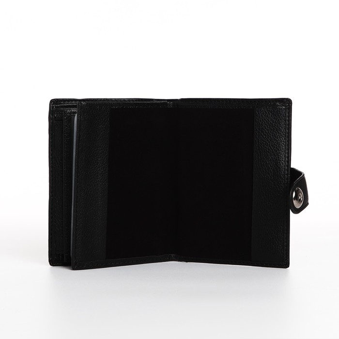 Портмоне мужское на магните, 3 в 1, для купюр, автодокументов и паспорта, цвет чёрный