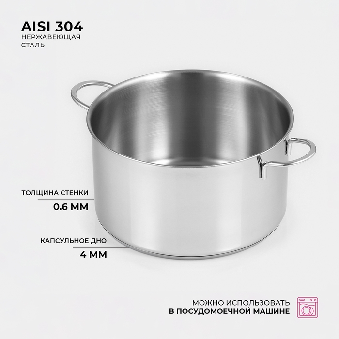 Кастрюля из нержавеющей стали «Грейт», 3,6 л, капсульное дно, индукция