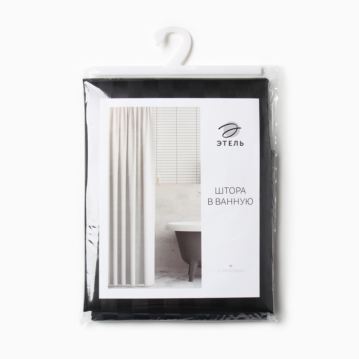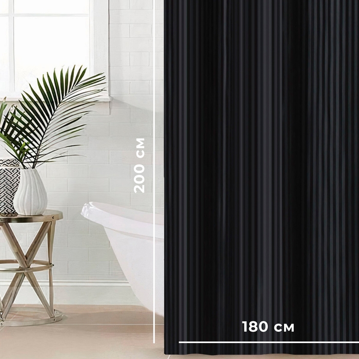 Штора в ванную Этель в полоску цвет черный, 180*200 см, 80гр/м2, 100% п/э