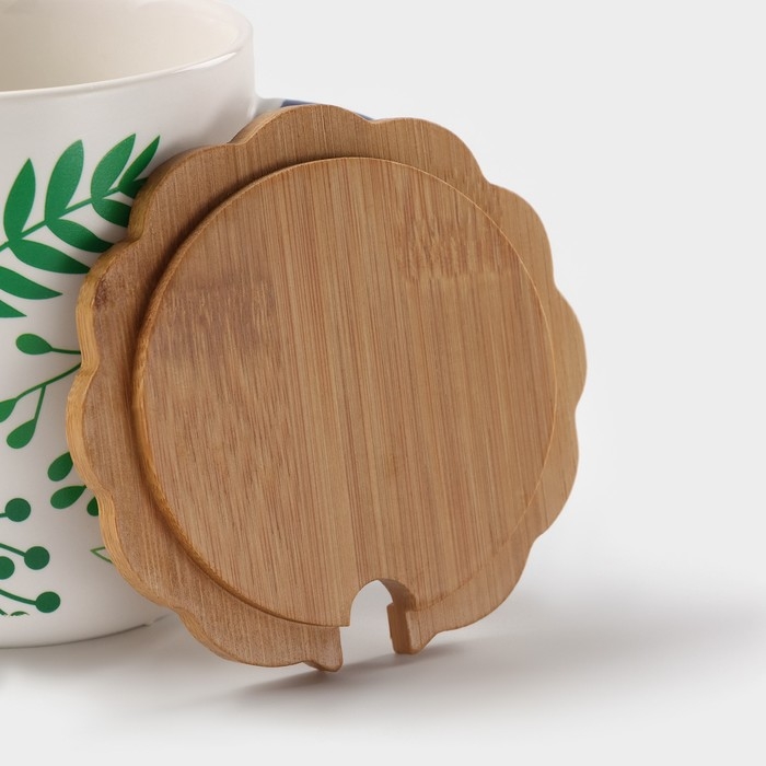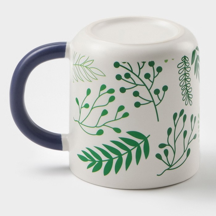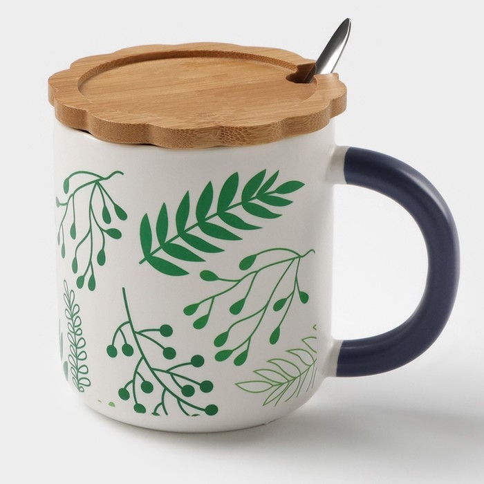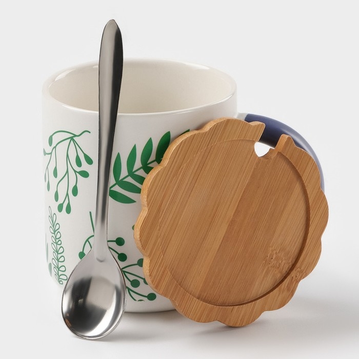 Кружка керамическая с ложкой «Гербарий», 350 мл, цвет белый