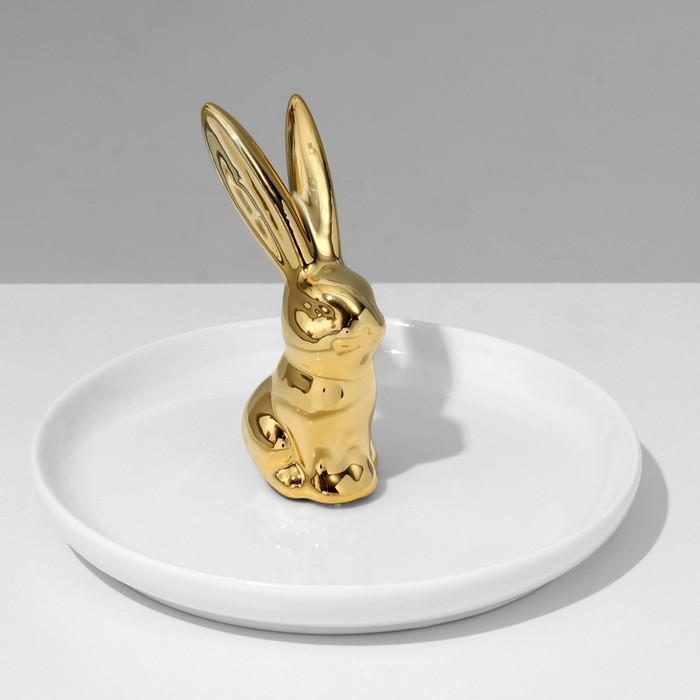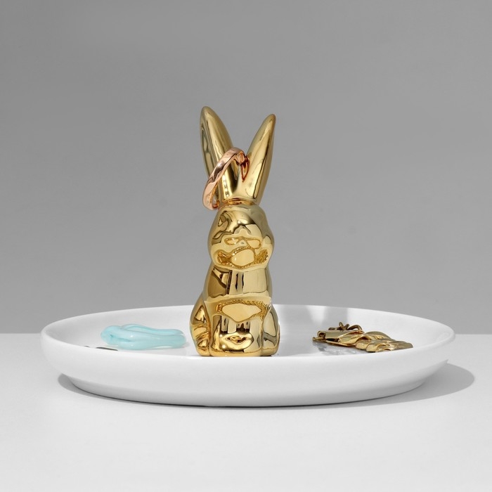 Подставка универсальная керамика «Кролик» 13×12, цвет бело-золотой