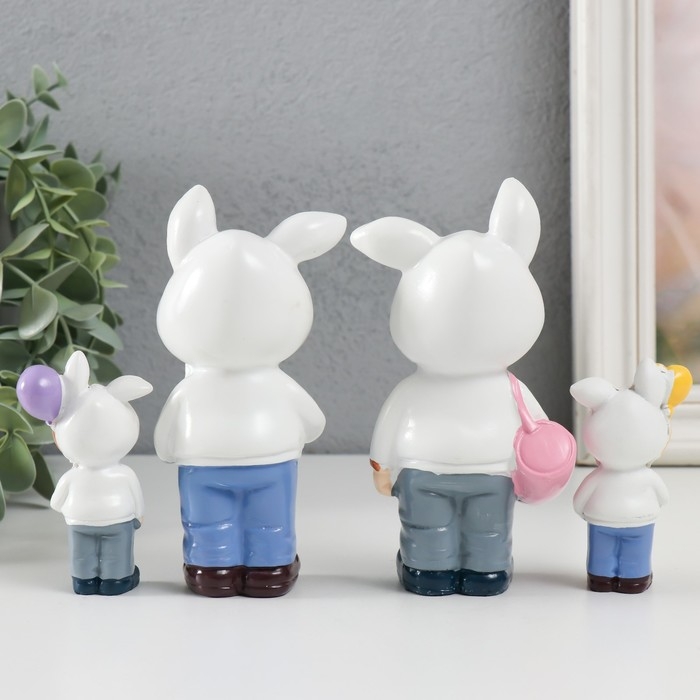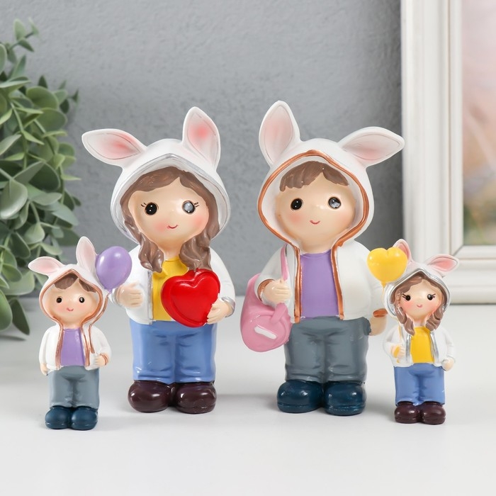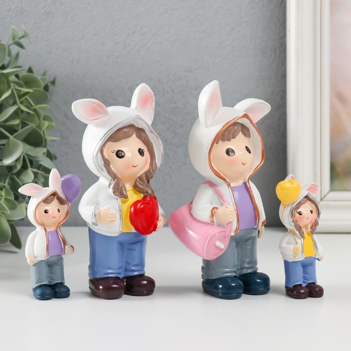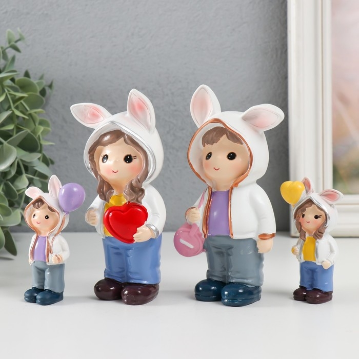 Сувенир полистоун "Малыши в толстовках с зайчьими ушками" набор 4 шт 3х2х7,5 6х3х13 см