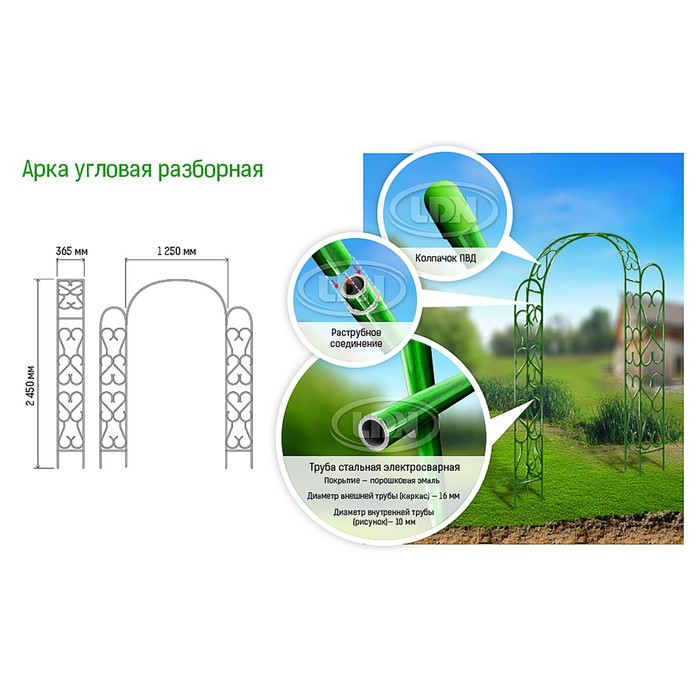 Арка садовая, разборная, 230 × 125 × 36,5 см, металл, зелёная