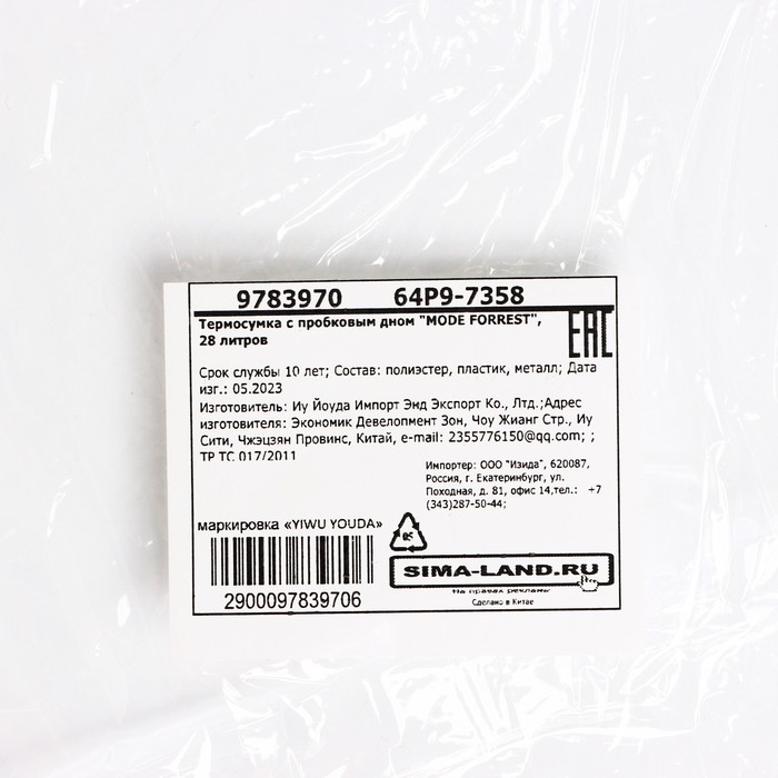 Термосумка с пробковым дном MODE FORREST, 28 литров