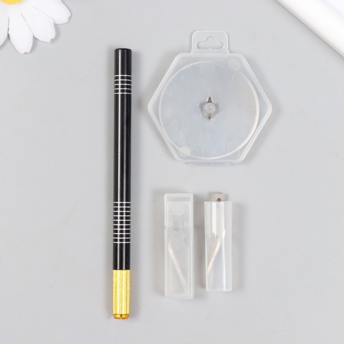 Набор для пэчворка: резиновый мат А4, линейка 15х15см, дисковый, макетный нож+лезвия в папке 96041
