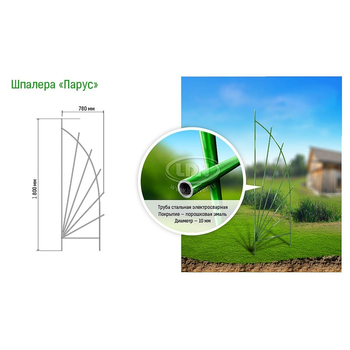 Шпалера, 170 × 65 × 1 см, металл, зелёная, «Парус»