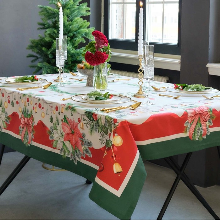 Скатерть Этель «Рождественский венок», 150х180 см, с ВГМО, 100% хл, саржа 190 г/м2