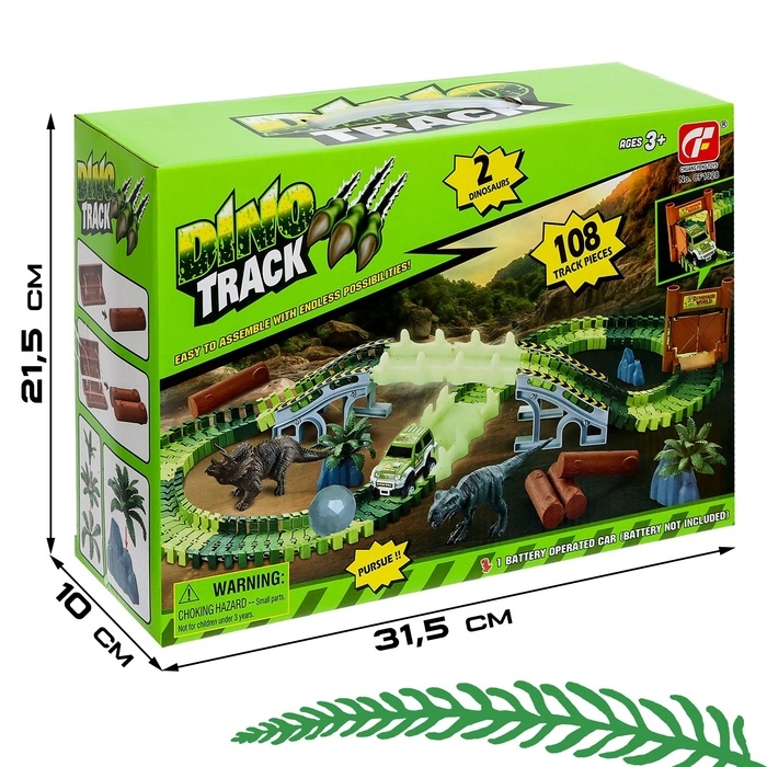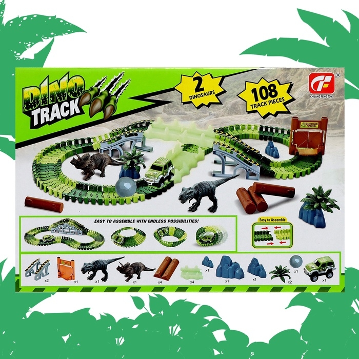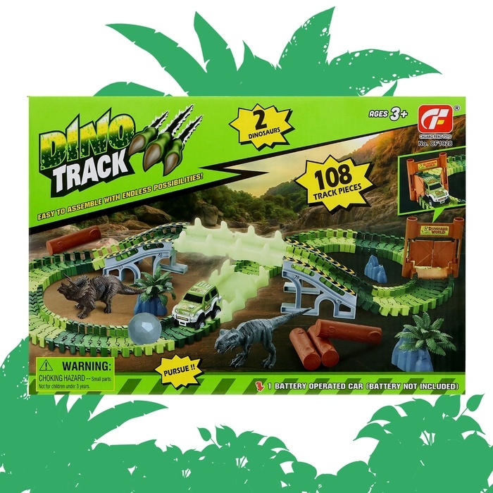 Гибкий автотрек «Дино», с воротами, 108 деталей, работает от батареек