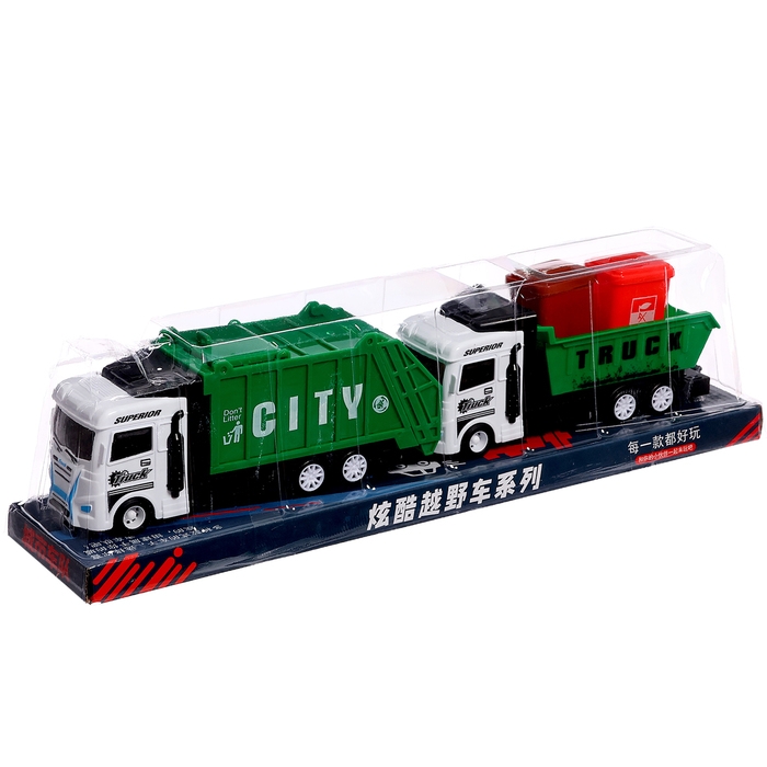 Набор грузовиков «Мусоровоз», инерция, 2 машины, баки