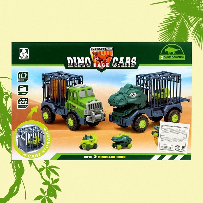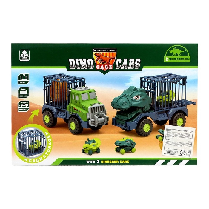 Грузовик-парковка «ДиноTruck», 2 машинки-динозавра в клетке