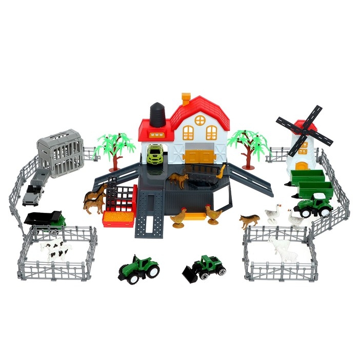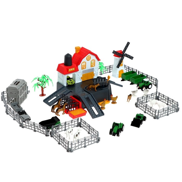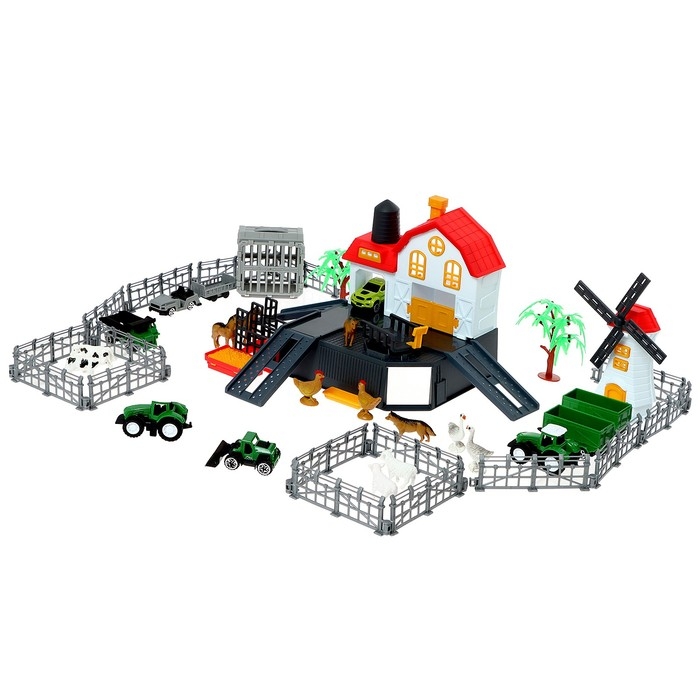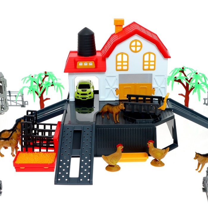 Парковка «Ферма», амбар, вольеры, транспорт, животные