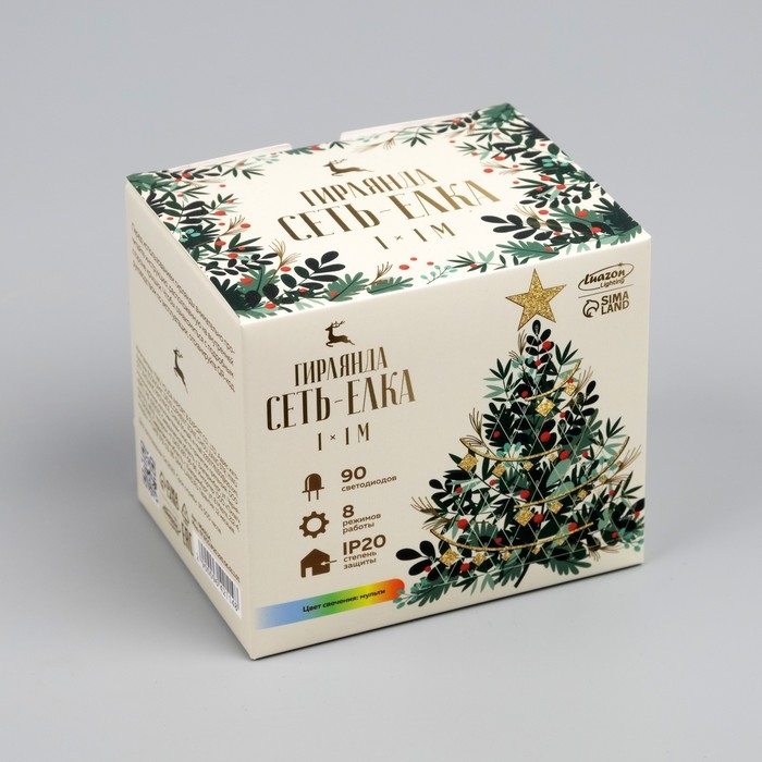Гирлянда «Сеть-ёлка» 1 × 1 м, IP20, тёмная нить, 90 LED, свечение мульти, 8 режимов, 220 В