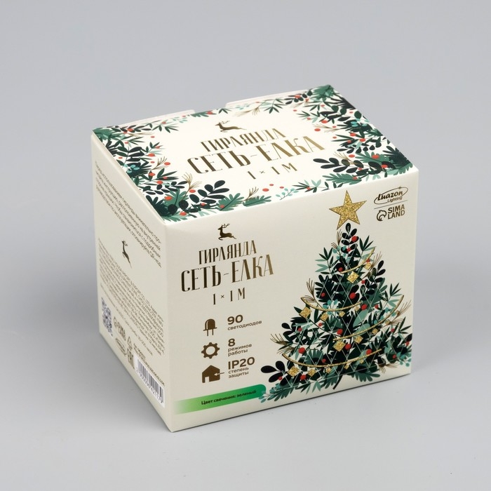 Гирлянда «Сеть-ёлка» 1 × 1 м, IP20, тёмная нить, 90 LED, свечение зелёное, 8 режимов, 220 В