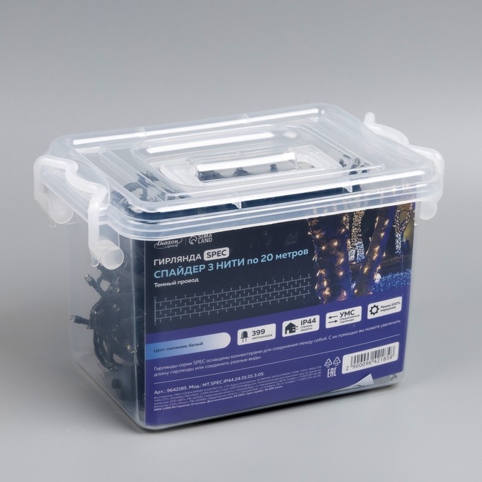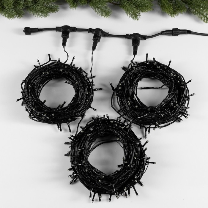 Гирлянда «Клип-лайт» 3 нити по 20 м, IP44, УМС, тёмная нить, 399 LED, свечение белое, мерцание всех светодиодов, 24 В