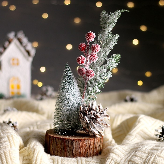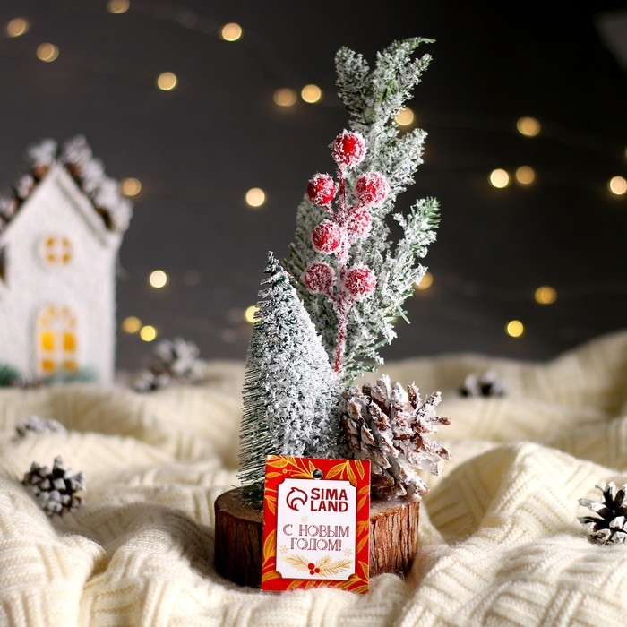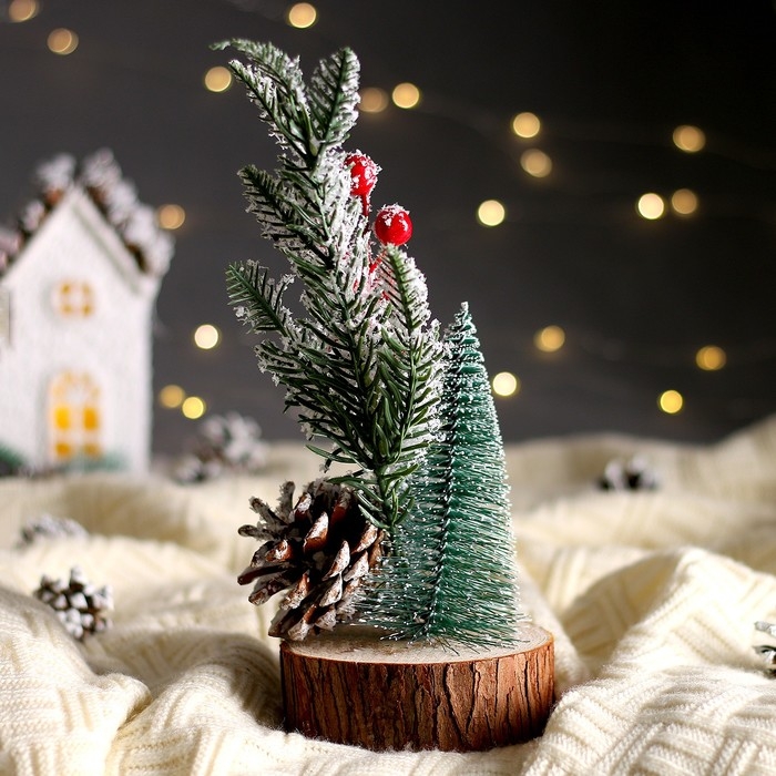 Новогодняя композиция «Ёлочка с веточками и шишкой» 13 × 13 × 26 см