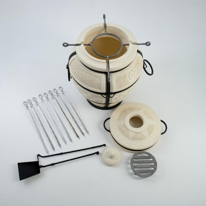 Тандыр "Сармат Есаул" h-82 см, d-54, 81 кг, 8 шампуров, кочерга, совок
