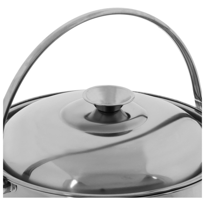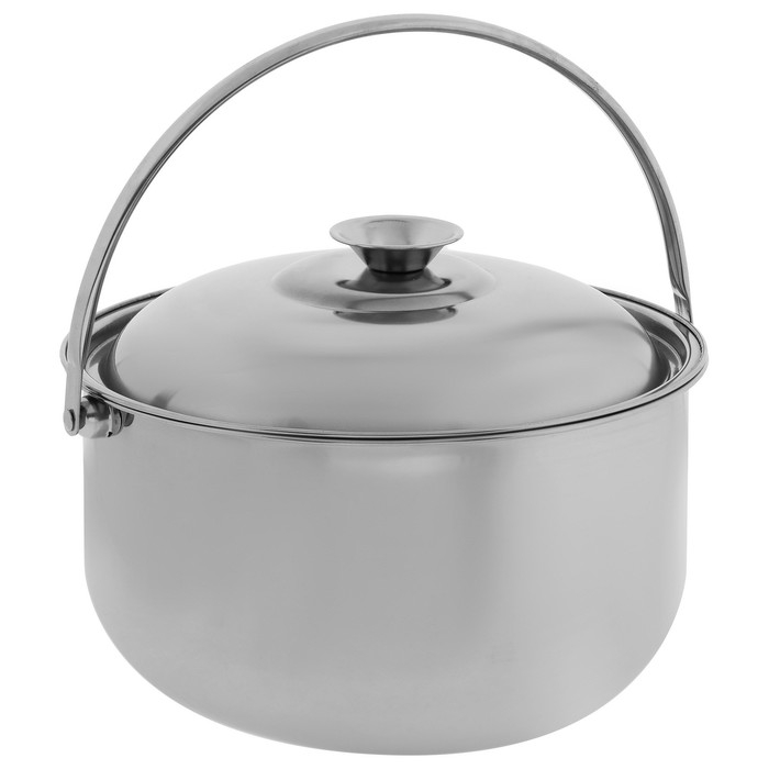 Походный котелок подойдёт для готовки на костре и газовой плите. Изделие выполнено из нержавеющей стали, его можно мыть в посудомоечной машине. Объём 3,4 л позволяет приготовить пищу и вскипятить воду сразу на нескольких человек. Котелок оснащён крышкой с ручкой.