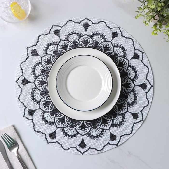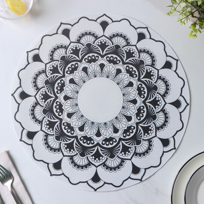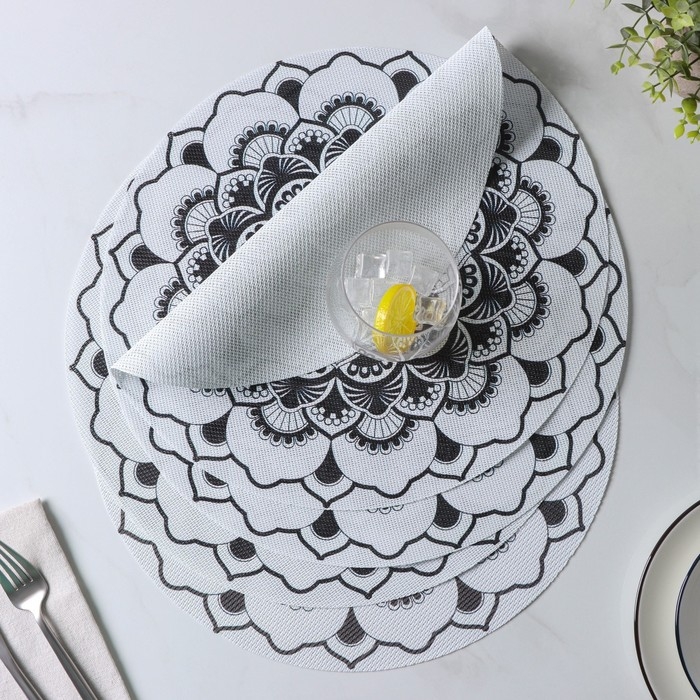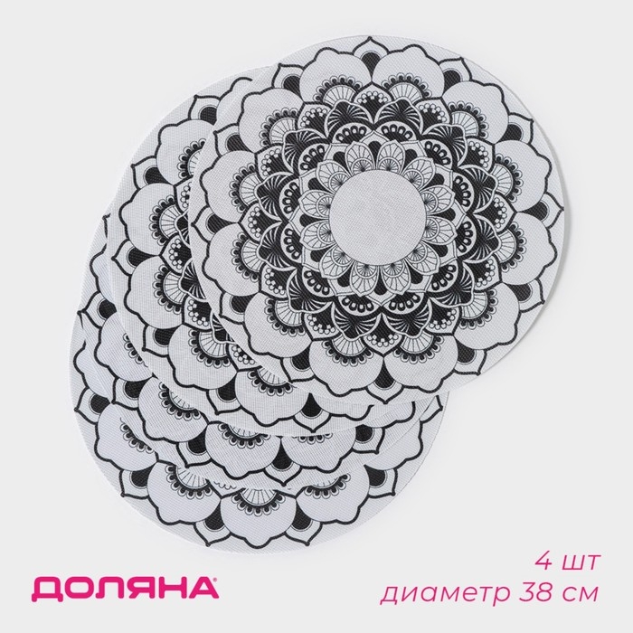 Салфетки сервировочные на стол Доляна «Мандалы», 4 шт, d=38 см, цвет белый