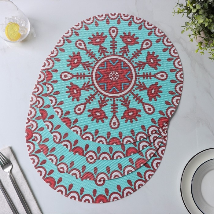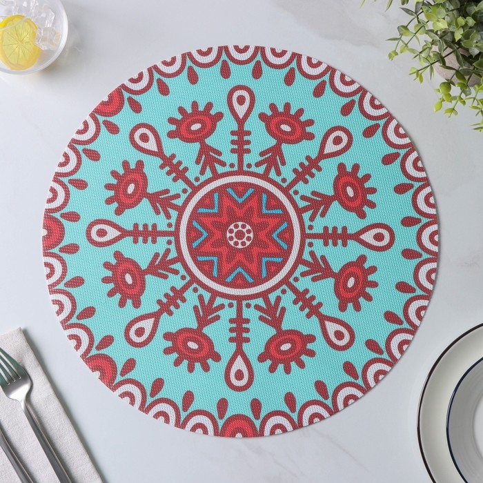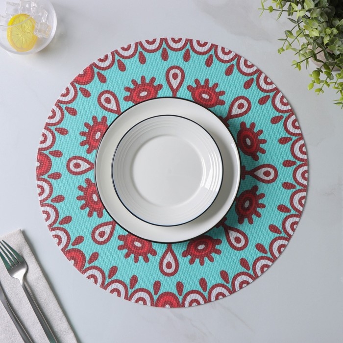 Салфетки сервировочные на стол Доляна «Колли», 4 шт, d=38 см, цвет бирюзовый