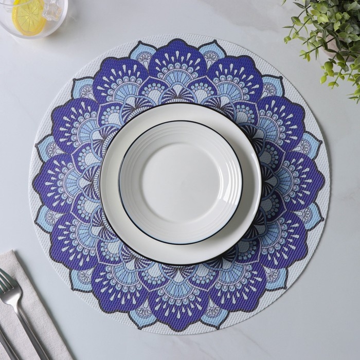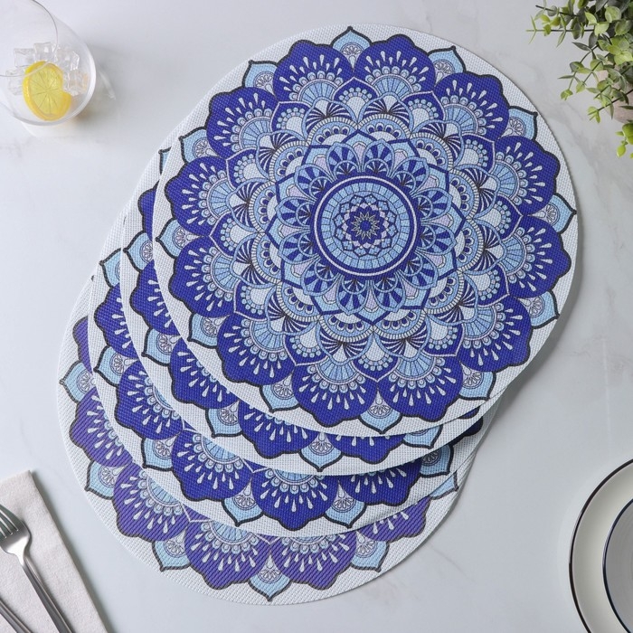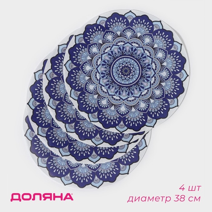 Салфетки сервировочные на стол Доляна «Силия», d=38 см, 4 шт, цвет синий