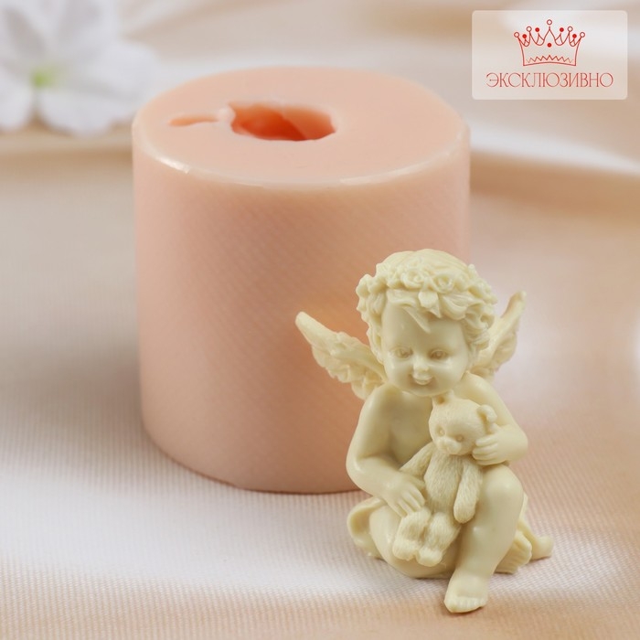 Молд силиконовый "Ангел с мишкой" 6,5х6,5х6,3 см (издел. 6х4,2х3,4 см)