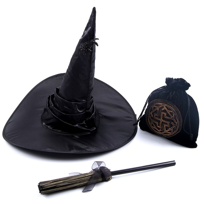Карнавальный набор «Магия», шляпа чёрная, метла, мешок