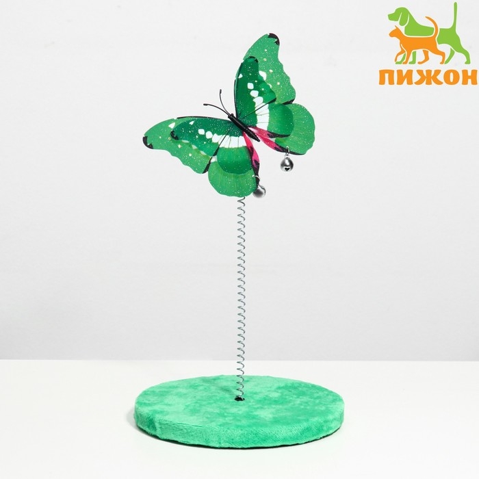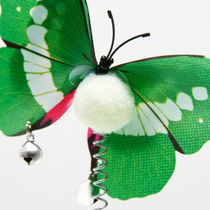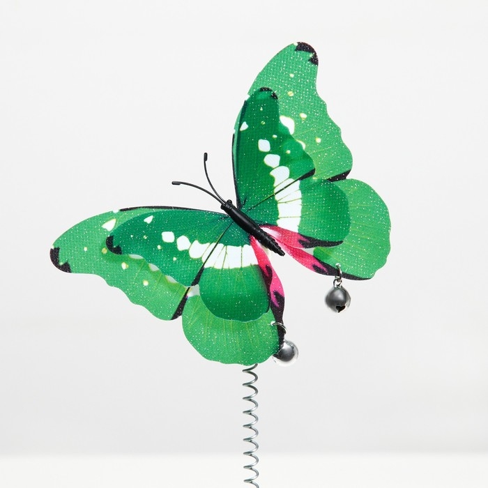 Игрушка представлена в виде бабочки с колокольчиками на крылышках, что стимулирует кошачий инстинкт ловли и преследования.