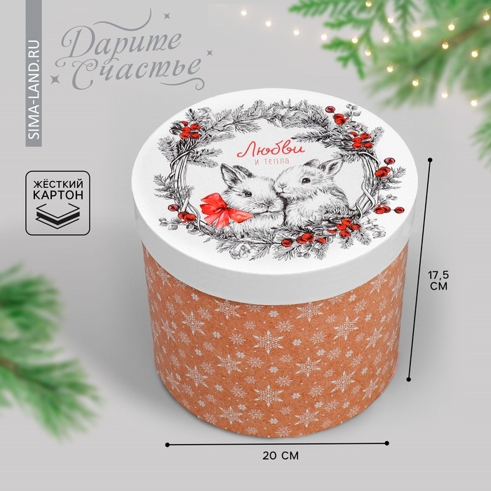 Коробка подарочная круглая «Любви и тепла», 17.5 х 20 см, Новый год